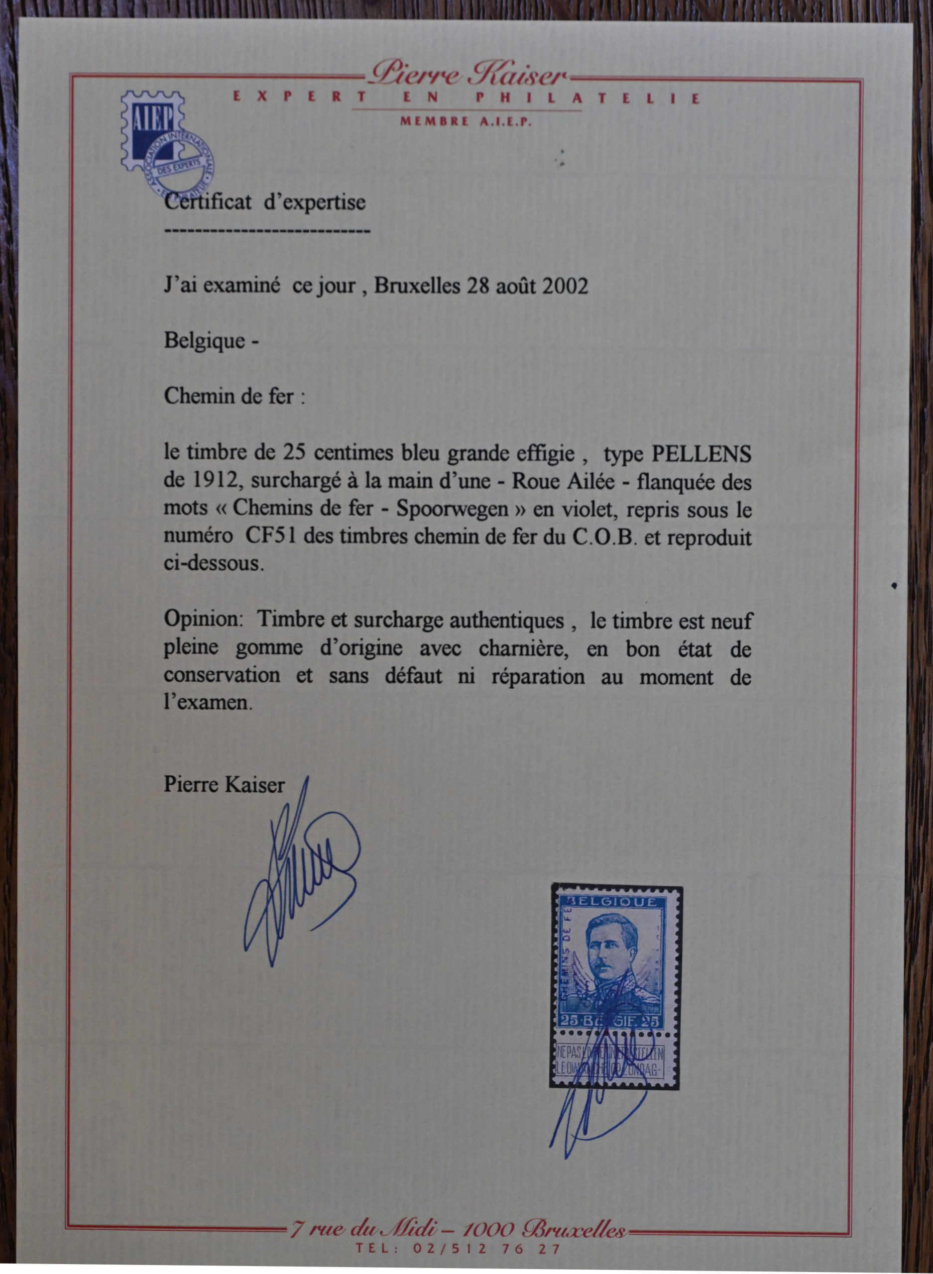 Avec certificat P. Kaiser du 28 Août 2002.