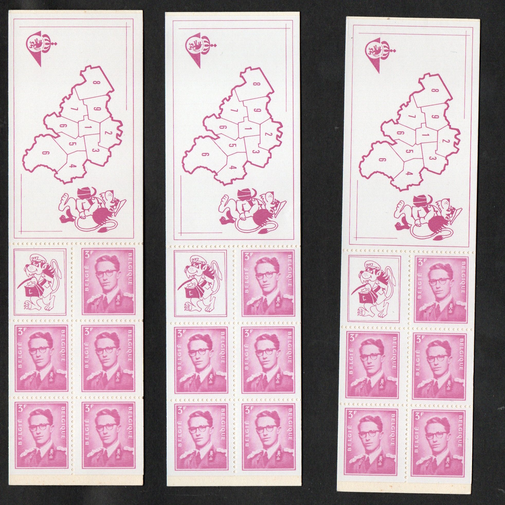 3 carnets aux centrages des timbres différents