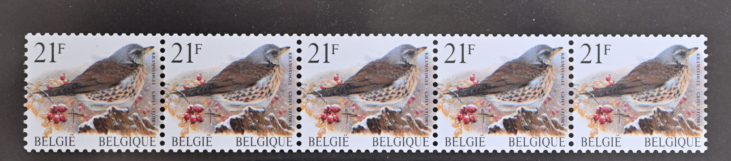 Bande de 5 avec N°  4 chiffres au verso. (9425)